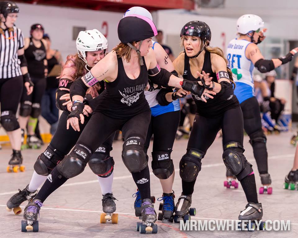 Supplementing in blocking are veterans Amy Spears, Bratislava Bruiser, Paige Bleed, Sarah Bruce and a host of others. Altogether, clean play on the flat-track is a focal point for Arch Rival’s opponents.