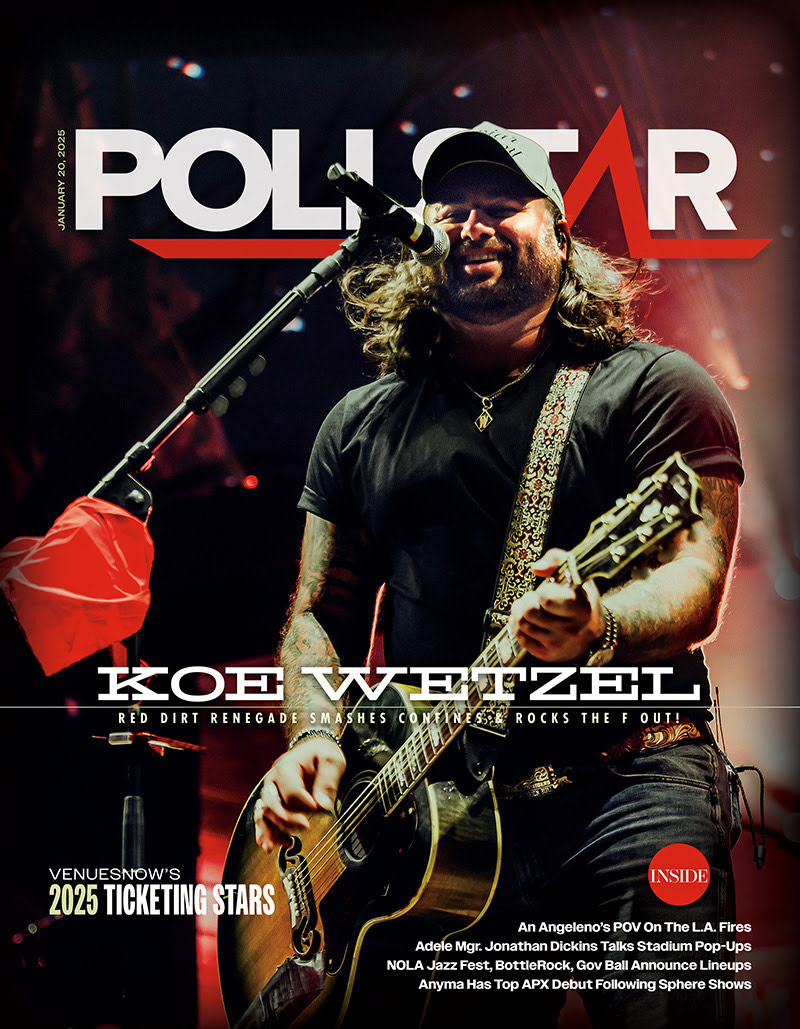 NASHVILLE, Tenn. – Koe Wetzel, the chart-topping renegade whose electrifying blend of Red Dirt country, grunge rock and outlaw spirit has earned him a loyal following across the globe, kicks off 2025 as this week’s POLLSTAR cover artist. Highlighting Wetzel’s meteoric rise and his unparalleled connection with fans, the profile explores how the Texas-born artist has reshaped the boundaries of country music with his unapologetic authenticity and relentless touring schedule.
