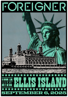 Rock and Roll Hall of Fame members FOREIGNER will mark their monumental 50th anniversary with a landmark performance at Ellis Island, NY on September 6, 2025, filmed on a closed set for a major documentary due to release in 2026, produced by Vertigo Live Productions.
