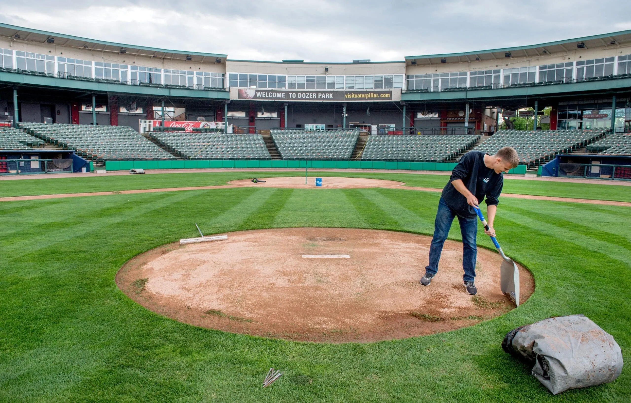 The new Dozer Park sod is a HGT hybrid blend. A Kentucky bluegrass sod mix, it is known for its durability. The sod was grown in the state of Illinois by Payne Sod Farm in Manteno. All dirt materials will come from DuraEdge, the official infield playing surface of Minor League Baseball.