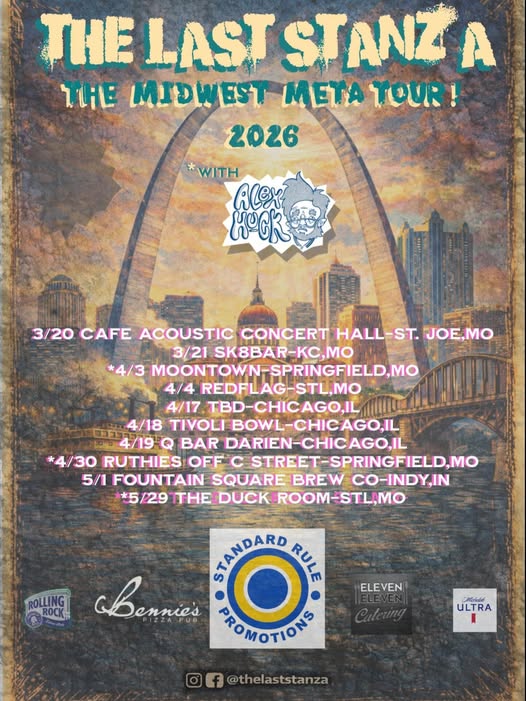 Fresh off the release of their album Decades Apart, the St. Louis-based pop-punk/alt-rock band The Last Stanza is embarking on an ambitious regional run: The Midwest Meta Tour. Kicking off tomorrow, March 20, 2026, the tour spans Missouri, Illinois, and Indiana, bringing high-energy live shows to both familiar Midwest venues and new cities.