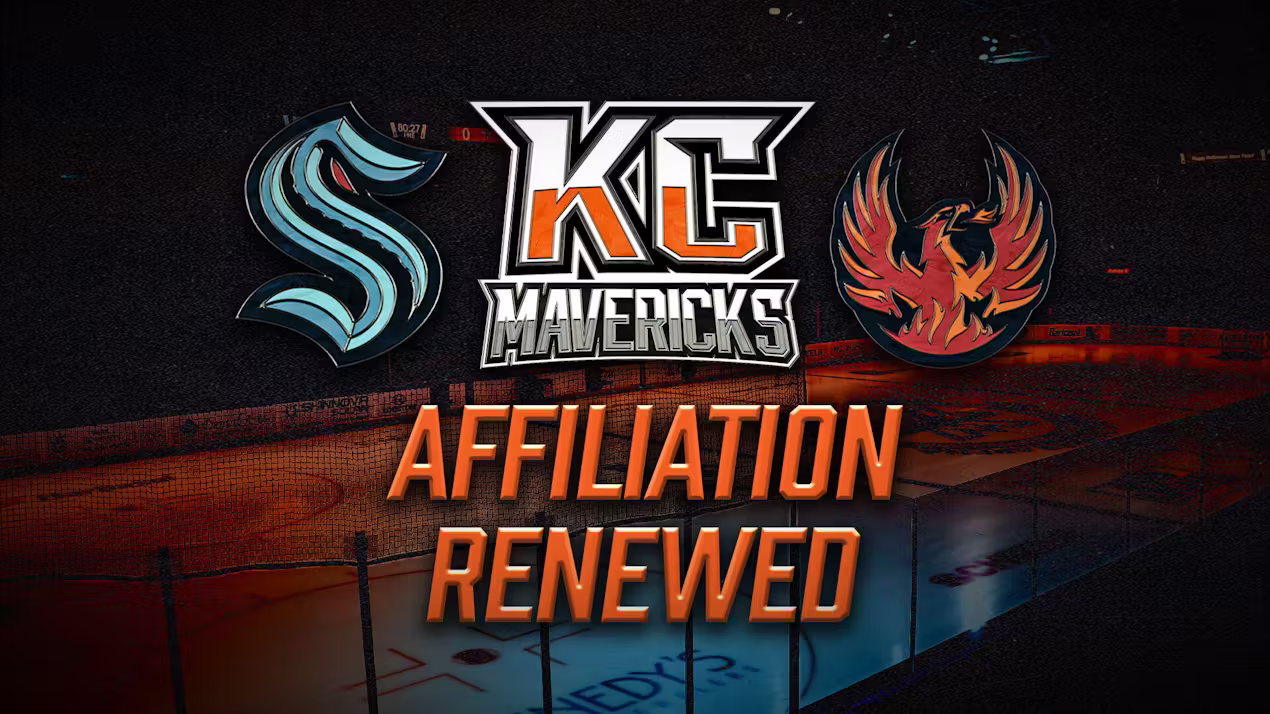 INDEPENDENCE, MO – The Kansas City Mavericks are proud to announce a new 4-year extension of the team’s affiliation with the NHL’s Seattle Kraken and AHL’s Coachella Valley Firebirds, continuing a successful partnership that further strengthens the player development path between Kansas City, Seattle, and the AHL’s Coachella Valley Firebirds.