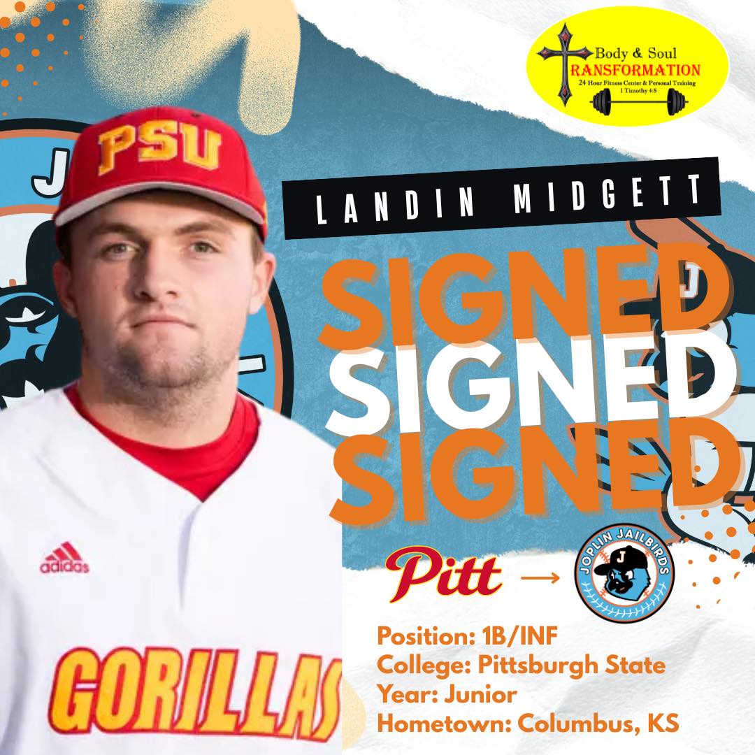 JOPLIN, Mo. — The Joplin Jailbirds have signed infielder Landin Midgett, bringing the talented college standout to the roster and reuniting him with his brother, Jace Midgett.